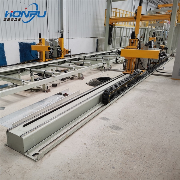 瓦楞板门扇自动焊接机采用激光检测瓦楞板轮廓,自动识别焊缝,焊qiang跟随激光寻缝系统,一边扫描一边焊接。本设备完全可以自动控制焊qiang的高低,一键式操作,无需编程。自动寻缝,自动识别焊接开始点与